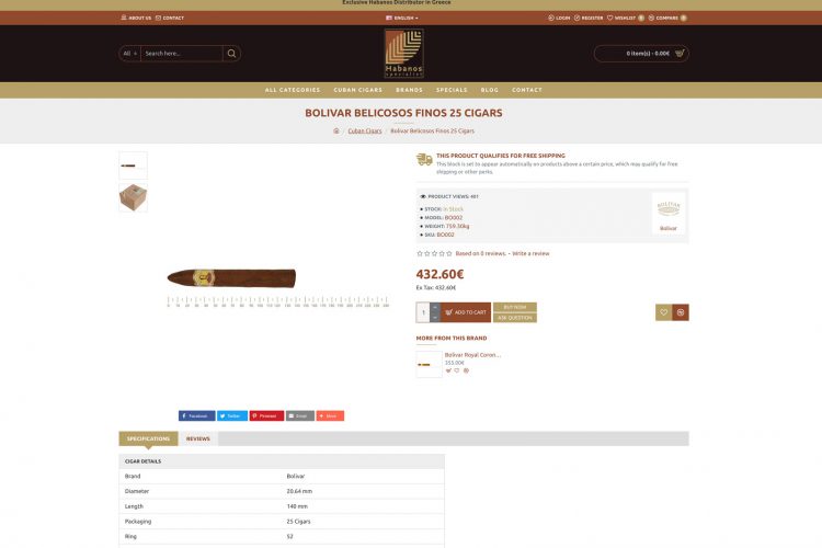 Habanos.gr offers the full Habanos portfolio to its Greek customers, with free shipping all around Greece and the quality assurance of the exclusive distributor of Habanos.